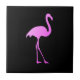 Neon pink flamingo custom black ceramic tile. Personalised tiles with cool design. Stylish decor for new home. Custom kitchen and bathroom wall decorations. Create your own trendy backsplash. Available in small and big sizes. Customisable colours.