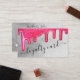 This girly and glamourous customer loyalty business card is perfect for a stylish and trendy professional businesswoman. It features faux printed sparkly neon pink thick glitter drips on top of a silver foil background. The typography is an elegant cursive script with a modern serif font to match. It's chic, pretty, unique, and luxurious; the perfect way to advertise your business and stylise your marketing and advertisement material for your customers.