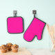 Neon Pink Solid Colour Oven Mitt & Pot Holder Set