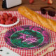 Celebrate with these trendy tropical neon sign inspired 50th birthday paper plates.
