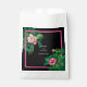 A modern yet retro themed neon pink tropical botanicals on a black background. A beautiful wedding design ideal for summer. Perfect neon pink tropical plants design featuring palm trees, pink Hibiscus flowers and Plumerias Frangipanis flowers. Black, pink, and green colours dominate this tropical pink neon design. The modern calligraphy typography contrast perfectly against the black and pink wedding themed design. A classy elegant wedding favour bag design with modern simple elements. Matching wedding stationery items and other wedding invite formats are also available.