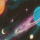 Neon Planets and Moons Outer Space Wallpaper