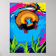 Neon Platypus Underwater Splash - Colourful Aussie Poster