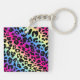 Neon Rainbow Leopard Pattern Print Key Ring