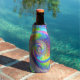 Neon Rainbow Spiral Fractal Abstract Digital Art Bottle Cooler