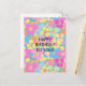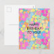 Neon Retro Floral Pink Birthday Holiday Postcard
