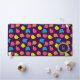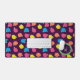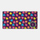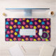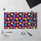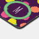 Stylised roses in bright neon pink, blue, yellow, and coral with neon green leaves are spangled across a deep purple background to create a fun floral pattern. Customise the monogram in the circle with your initial to create a unique desk mat for your work or play space.