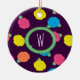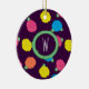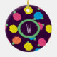 Stylised roses in bright neon pink, blue, yellow, and coral with neon green leaves are spangled across a deep purple background to create a fun floral pattern. Customise the monogram on this ornament with your initial to make it uniquely your own.