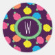 Stylised roses in bright neon pink, blue, yellow, and coral with neon green leaves are spangled across a deep purple background to create a fun floral pattern. Customise the monogram on this sticker to make it uniquely your own.