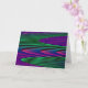 This greeting card features a digitally created image that resembles a series of gentle waves rippling against a calm shore. The waves are vivid neon shades of green, pink and blue and have a 3D quality. The inside of the card has been left blank, making it suitable for anyone and any occasion of your choosing.