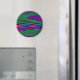 This magnet features a digitally created image that resembles a series of gentle waves rippling against a calm shore. The waves are vivid neon shades of green, pink and blue and have a 3D quality.