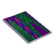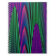 This awesome notebook.features a digitally created image that resembles a series of gentle waves rippling against a calm shore. The waves are vivid neon shades of green, pink and blue and have a 3D quality.