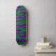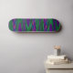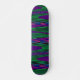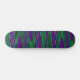 This awesome skateboard features a digitally created image that resembles a series of gentle waves rippling against a calm shore. The waves are vivid neon shades of green, pink and blue and have a 3D quality.