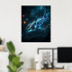 A fierce neon shark surges through dark futuristic waters with metallic skin plating, glowing gill vents, and sharp luminous teeth. Electric blue and cyan current lines streak across its powerful body, emphasising speed and danger. Flooded tunnels, broken rails, submerged machinery, drifting debris, and warning lights create an abandoned cyber metro atmosphere. This intense shark design combines ocean predator energy with sleek sci-fi style, making it perfect for gaming rooms, offices, man caves, and shark enthusiasts.