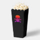 Neon Skull popcorn boxes should be filled with popcorn and other snacks for Halloween, haunted houses, horror film fans, murder mystery fans, book reading clubs, horror conventions, pirate reenactors, roleplay gamers, Goths, bikers, or just people who like skulls. Neon Skull is Steamy Raimon original art.