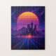 Neon Skyline Horizon – Retro Synthwave Cityscape Jigsaw Puzzle