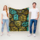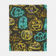 Neon Spooky Halloween Ghost Bats Pumpkins Pattern Fleece Blanket
