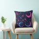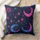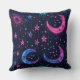 A vibrant, repeating pattern of glowing neon pink and blue moons, stars, and suns against a dark navy background; with a hand-drawn, slightly textured, starry sky aesthetic, featuring luminous, semi-transparent shapes and sparkling details