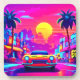 Cruise through a vibrant neon city at sunset. A classic car navigates the dazzling cityscape, bathed in warm hues. Perfect for retro-futuristic and urban art lovers (This Design Made With AI). Place Order Today and Embrace the Joy of Shopping!