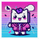 1980s-inspired kawaii creature bathed in vibrant neon colours.