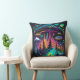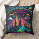Neon UFO and Alien Scene Psychedelic Art Cushion