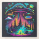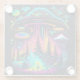 Neon UFO and Alien Scene Psychedelic Art Glass Coaster