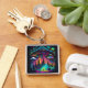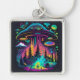 Neon UFO and Alien Scene Psychedelic Art Key Ring