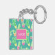 Neon Watercolor Cactus In Pots Pattern Key Ring
