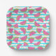 Neon Watermelon on Stripes Pattern Paper Plate
