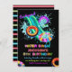 Colourful neon pool waterslide tubing birthday party invitations. Features neon fonts, tubes, waterslide and water splashes on a black background. Neon coloured bars on the back. Great for a girl or boy! The words "Water Bash and birthday" can not be changed but can be deleted. To make more changes go to Personalise this template. On the bottom you’ll see “Want to customise this design even further? Click on the EDIT using Design tool. From there you can change some of the fonts & some colours, move things around or delete what you need.