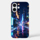 Stylish anime phone case showing a snowy city street at night with glowing neon signs and falling snowflakes. Perfect for urban and cyberpunk winter vibes.