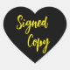 Signed copy heart stickers with the text "signed copy" perfect for a book launch, a book signing or any author and writer's event. Bold, minimalist and modern design with a script font.