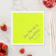Personalised solid colour napkin in the shade of neon yellow . Vivid ,flashy colour evoking the 1980s .Great for retro parties or other purposes . This bright colour will certainly bring cheer into your days . Easy to customise it now with your personal or business details .