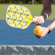 Personalise your paddle with monogrammed initials for a unique touch. Its modern, cool, simple, and basic style makes it both elegant and professional, while the tropical pineapples and flamingos add a cute, exotic flair. Whether you're playing casually or competitively, this fun personalised pickleball paddle will make a bold statement on the court. Get ready to elevate your game with this eye-catching, neon yellow and white striped paddle!