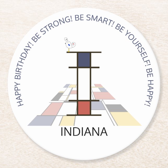 Superb, funny, artistic monogram. Here is the letter "I". Neoplasticism style, or De Stijl, line and color artistic decoration, the funny bird sits on the letter. The field of art is located under the letter. The template name "INDIANA" is located under the image. An elegant and unique coaster for anyone. This design is fully customizable. You can change or delete all the texts, and you can change the image. If you wish to change fonts, colors, sizes or the whole composition of the design feel free to use the "Edit Design" or "Personalize" (as the case may be) button of the blue color to further customize it. You will be transferred to the "Design Tool" where you can find fonts, colors, sizes on the right menu; layers, images, geometric elements, backgrounds on the left menu. Just be creative, customize, buy one, enjoy the party, and be happy!