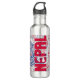 Nepal Flag Gorgeous Patriotic Stainless Steel Water Bottle with the elegant inscriptions "Nepal" symmetrically placed on the bottle. Inscriptions are infused with the pattern from the national flag of Nepal. Background is covered in the cloud of the words "Nepal" written in the different alphabet forms, languages and fonts. All words are coloured with the national colours used on the flag of Nepal.The Bottle is finished in the natural stainless steel colour. Nepal Water Bottle is the perfect companion for your water and the marvellous gift for any occasion. © 2023 CountriesOfTheWorld