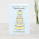 A stylish three tiered wedding cake in pastel colors, against a pale blue background. The words 'Congratulations to a special Nephew and his Wife on their Wedding Day'.