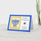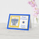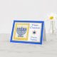 Happy Chanukah Dearest Nephew, contemporary menorah with blue candles, paper greeting card. Digital illustration with a lit menorah and a Star of David. Art, image, and verse copyright © Shoaff Ballanger Studios, 2024.