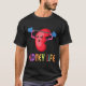 I give wanted to give this a 4 instead of a 5 because these Basic DARK T0shirts run unexpectedly SLIM or Narrow. Which is great if you do not have a potbelly, but I have a paunch. It isn't the shirt's fault that I've got a beer belly. The design and shirt itself is a quality cotton shirt. The color is more of a deep purple, but still a very pretty color. The Basic DARK T-shirts run a bit SLIMMER than the Basic Ts. The neck is a fraction narrower (or seems to be narrower) also. I'm a paunchy middle-aged woman and my neck is 12 inches (31cm) thick and the neckline fell about the same as in the photo of the man, and I had the desire to tug it a bit. So if you're a thick necked man or like loose shirts, be aware these are slimmer shirts. Once I get rid of my lockdown paunch it'll look great. The shirt washed well in cold water with no apparent bleeding. We don't have a dryer, so it hung dry. Did not shrink. Love the colors and the design. The design looks smaller on my shirt than it does on the model on-line. But still, it looks good on the shirt. The printing looks as it does on the model, just the size seems fractionally smaller. Washed garment in cold water, hung dry and design appeared unaffected.