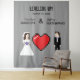Nerdy 8-bit heart wedding or engagement backdrop tapestry