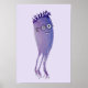 Geek jellyfish monster poster with a watercolor illustration of a smiling blueish purple character with nerd glasses, tentacles, big teeth and funny hair. This funny monster design will appeal to people who love fun, silly, geeky art.
