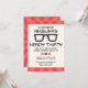 Nerdy thirty birthday party invitation (4.5 x 6.25") featuring a pair of geeky glasses and pi symbols. Dark, customisable text on a slightly off-white, cream coloured background. Top and bottom are pale red sunburst borders. Fun design with a touch of retro. Great 30th birthday party invite for all the geeks out there.