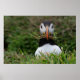 A puffin on it's way down it's burrow with nesting material. These wonderful Atlantic Puffins come ashore to breed between March and August. On Skomer Island, off the Pembrokeshire coast, it's possible to get a close up view of them as they go about their daily rituals. These endearing little auks will brighten up anyone's day so feel free to personalise them to suit your occassion and bring a smile to someone's face.