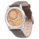 The watch looks really great!  Very sharp and well done. The leather band is really nice, though for a man's watch I think it should be longer. Unfortunately, it isn't big enough for my husband's wrist but I will get a replacement because he is very excited to wear it!