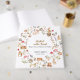 Enchanting watercolor woodland baby shower guest book featuring cute forest animals—bunnies, hedgehogs, squirrels, deer, bears, birds—in a whimsical circle with mushrooms, berries, florals, leaves, and soft foliage on clean white background. This gender-neutral design creates a magical nature vibe! Elegant gold text reads "Nestled in the Forest: Share Your Wishes for Baby" with personalization for name and date. Perfect for Boho forest-themed celebrations or woodland nurseries—high-quality hardcover keepsake to capture heartfelt wishes, advice, and love from guests!