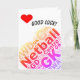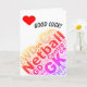 Netball word cloud heart shape design good luck card. Netball captain and positions custom, personalised greeting card.