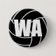Netball Wing Attack WA Button Badge. This fun and stylish Netball players button badge is in the form of a black netball with the player position, Wing Attack, WA marked clearly in large white bold letters. This netball button badge makes a fun netball accessory for netball players and netball teams. Other netball player positions button badges are also available in store. Get them all for your Netball team. More netball gifts available in store!