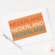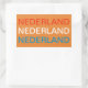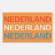 Nice sticker with the word Netherlands in red, white, blue on an orange background. Perfect for your suitcase or other luggage so you can quickly find your suitcase on the band. You can change the place name to any other city, village, airport or country.