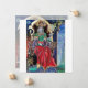 Colourful, vibrant , contemporary painting in gold ,blue,red,green,brown colours . A mysterious hypnotic sorcerer with elegant gorgeous red velvet costumes holding a magic sphere sitting on a gothic throne with gargoyles and an owl. Ambient is surreal,fantastic ,alchemic where you see a jester is drinking from a cup, a templar monk flying on a frog,transparent bubbles,fantasy landscapes with hell fire,cosmic blue sky with stars , mountains of heaven,trees .Egg Tempera on wooden panel with golden foil. 1989 , Miniature Made with pictorical techniques of 1300 by Alessandro Lumini (c) It is also a beautiful fantasy design for Christmas,Holiday,Birthday,New Year's Eve day, Mardi Gras and Carnival greetings.
