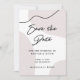 These modern minimalist wedding save the date cards feature a chic neutral beige watercolor design on white, with an abstract curvy black line for added style. The back of the card is a rich black that emphasises the subtlety of the beige. Modern, on-trend handwritten script completes this stylish look.